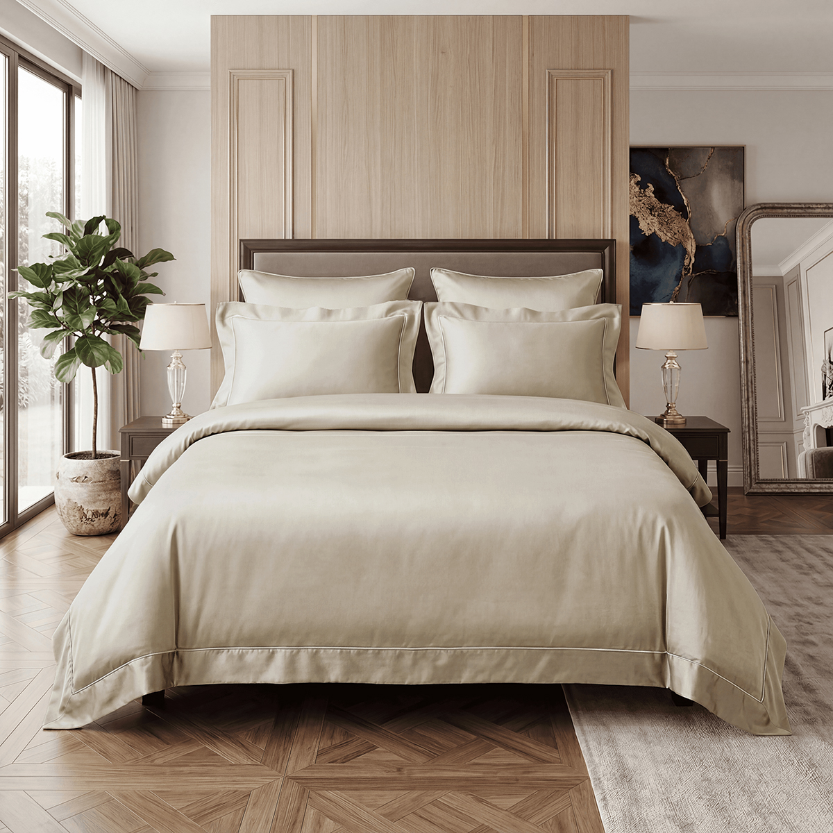 Элегантные «ушки» с изысканным кантом (7 см) на наволочках и пододеяльнике — выглядят дорого и стильно. Молнии на всех элементах. Подарочная упаковка — для подарка или ощущения праздника для себя.