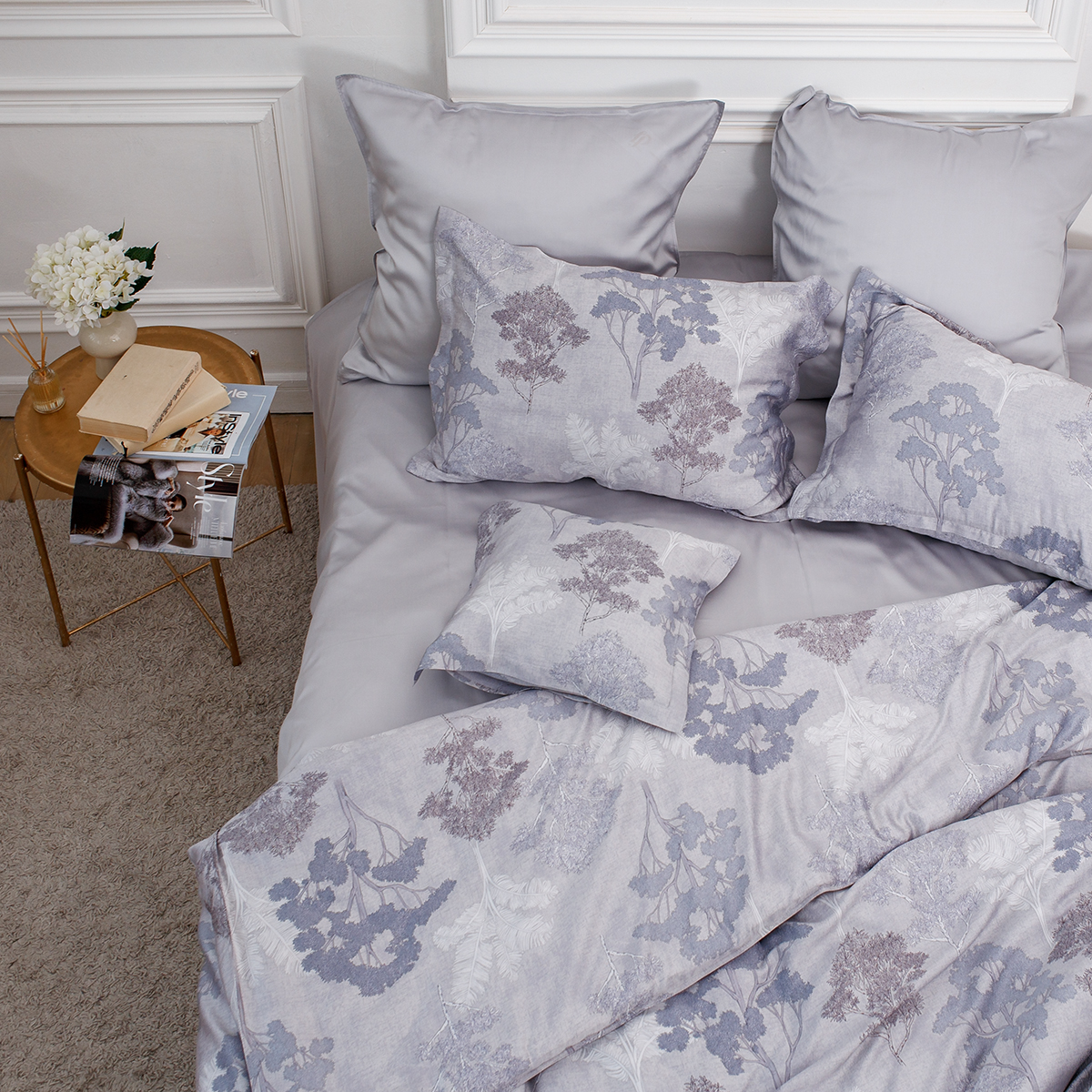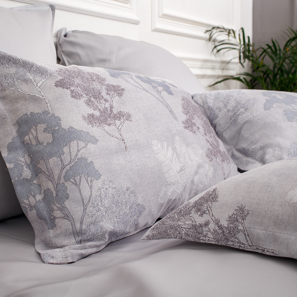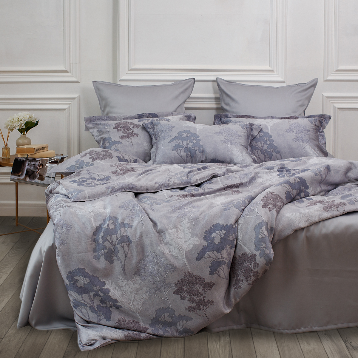 Создавая принт постельного белья Мистери дизайнеры вдохновлялись удивительными и таинственными природными мотивами. Растительный принт один из основных ультрамодных трендов последних сезонов. Утонченный микс холодных оттенков аметиста и спокойный, сдержанный серебристо-серый фон, сочетание более ярких и полупрозрачных фактур придают дизайну особую стильную глубину и загадочность.