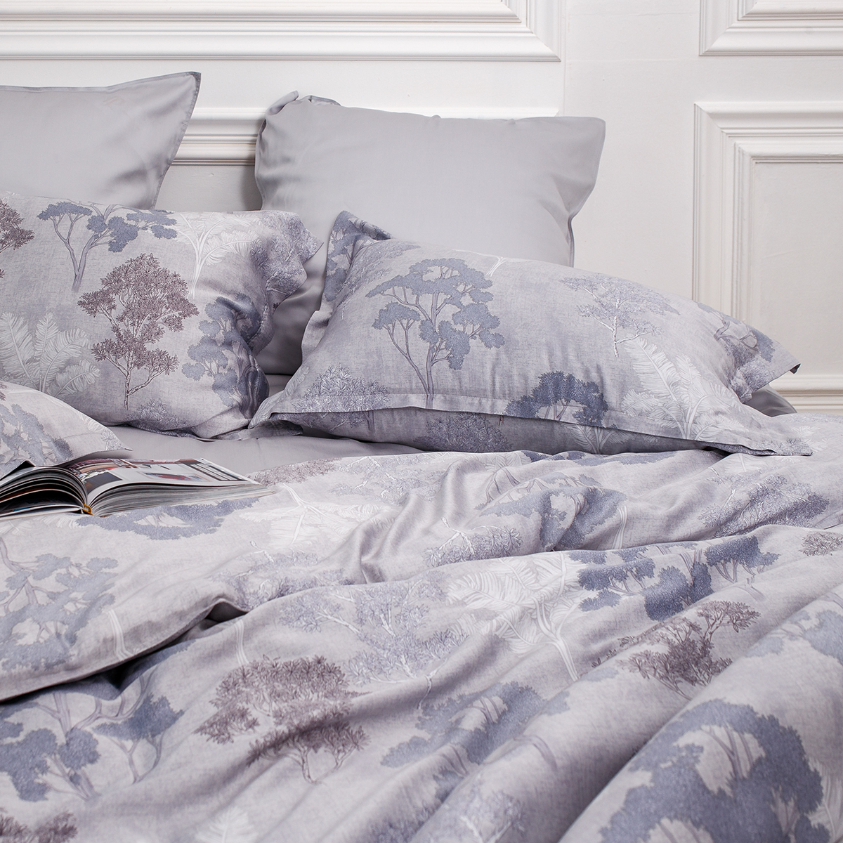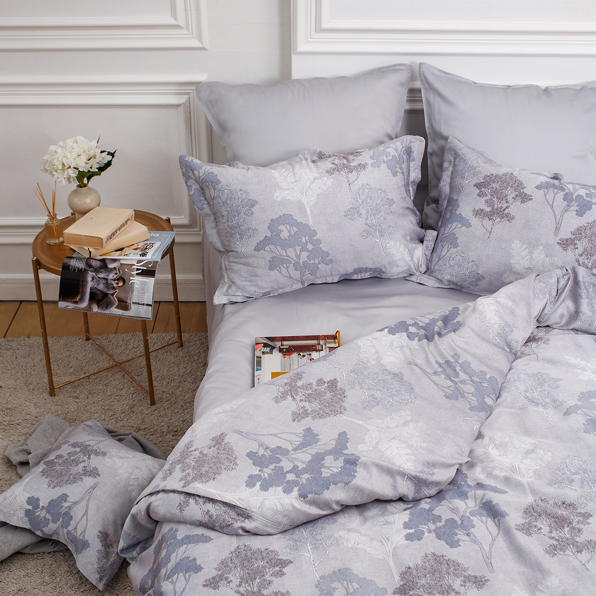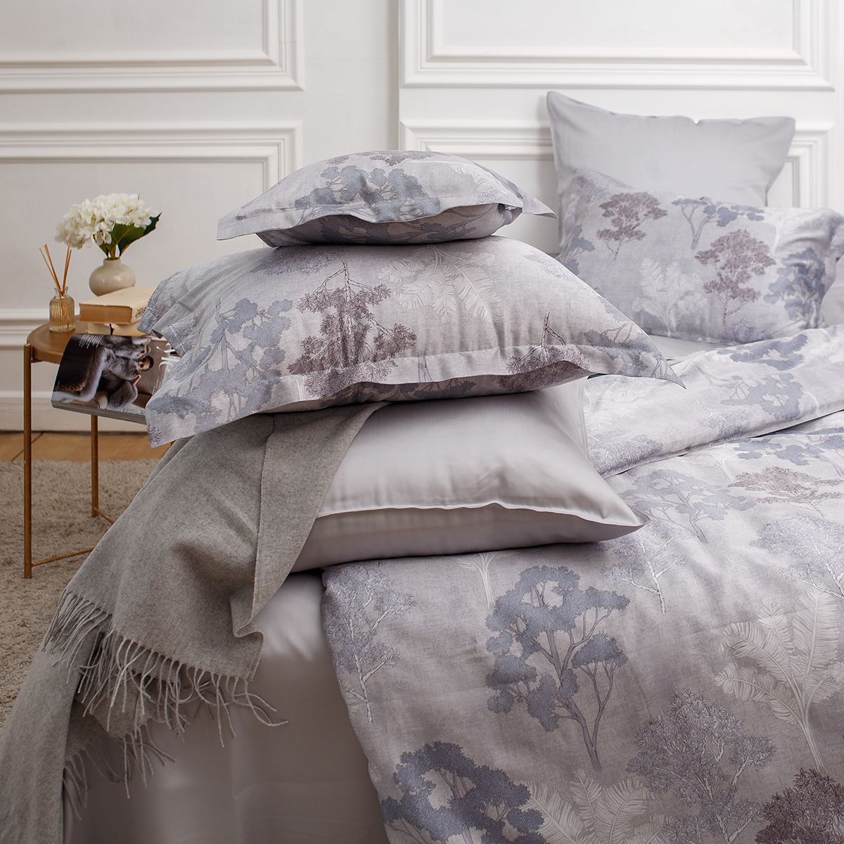 Создавая принт постельного белья Мистери дизайнеры вдохновлялись удивительными и таинственными природными мотивами. Растительный принт один из основных ультрамодных трендов последних сезонов. Утонченный микс холодных оттенков аметиста и спокойный, сдержанный серебристо-серый фон, сочетание более ярких и полупрозрачных фактур придают дизайну особую стильную глубину и загадочность.
