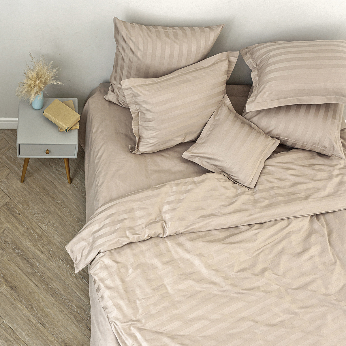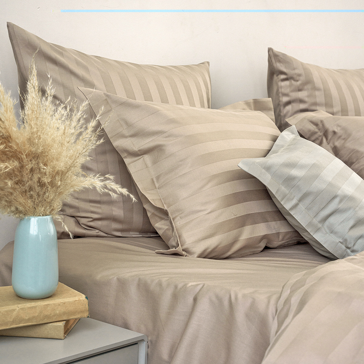Наволочка Страйп-сатин КАПУЧИНО
