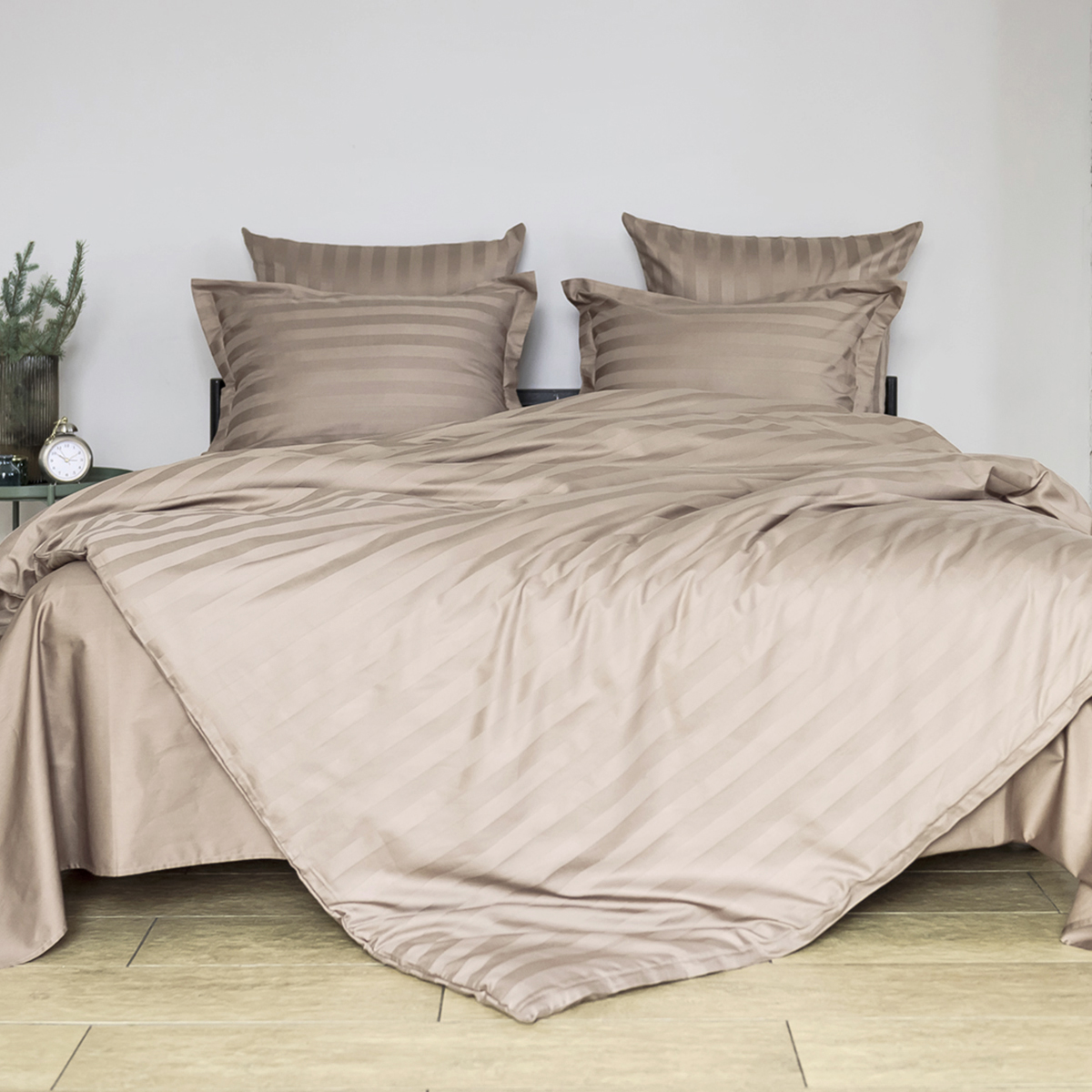 Однотонный стильный пододеяльник произведен из ткани страйп-сатин – 100% хлопок с жаккардовым рисунком в виде полос 3х3
