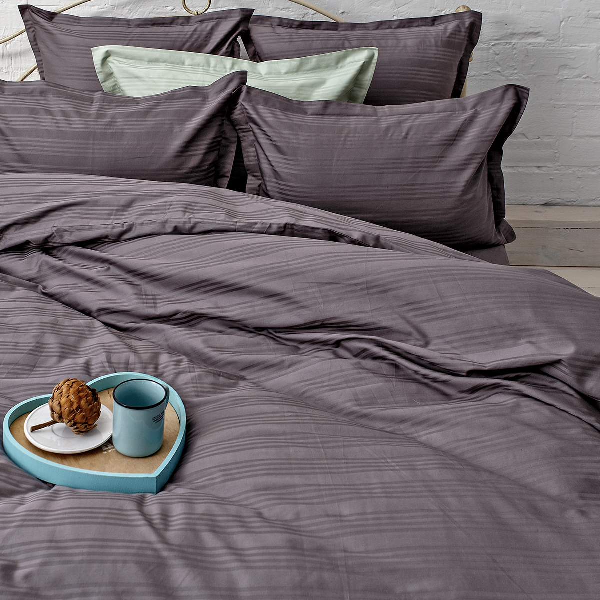 Однотонный стильный пододеяльник произведен из ткани страйп-сатин – 100% хлопок с жаккардовым рисунком в виде полос 4*1.