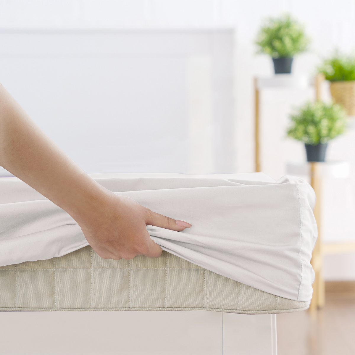 Детали: тонкая резинка по всему периметру простыни для плотной фиксации на матрасе. Высота бортика 30+5 см.