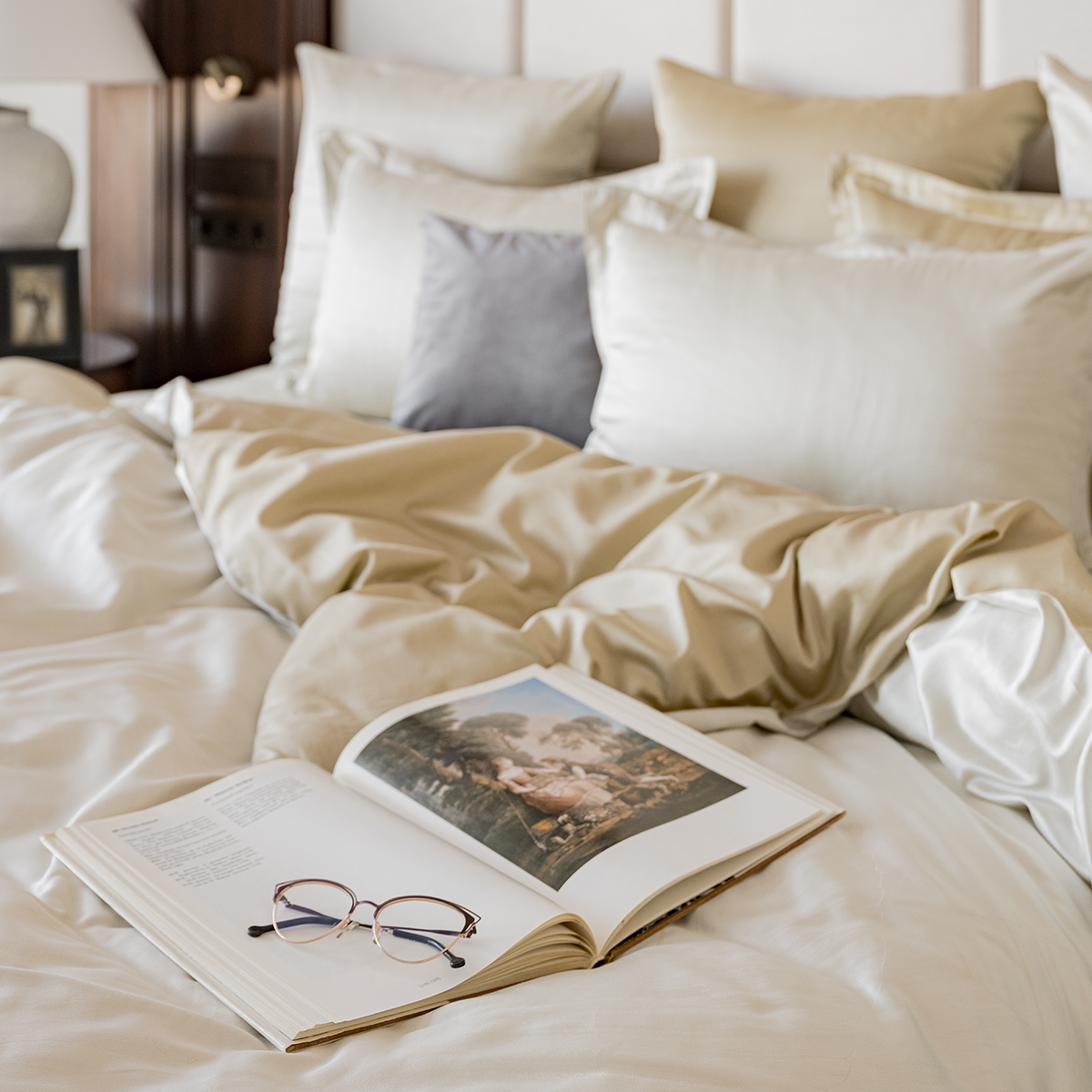 - Лицевая сторона наволочек и пододеяльника выполнена из жаккардовой ткани, оборотная из премиального длинноволокнистого хлопка сорта Пима