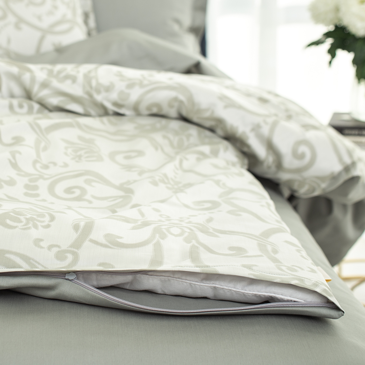 • Лицевая сторона наволочек и пододеяльника выполнена из жаккардовой ткани, оборотная из премиального длинноволокнистого хлопка сорта Пима