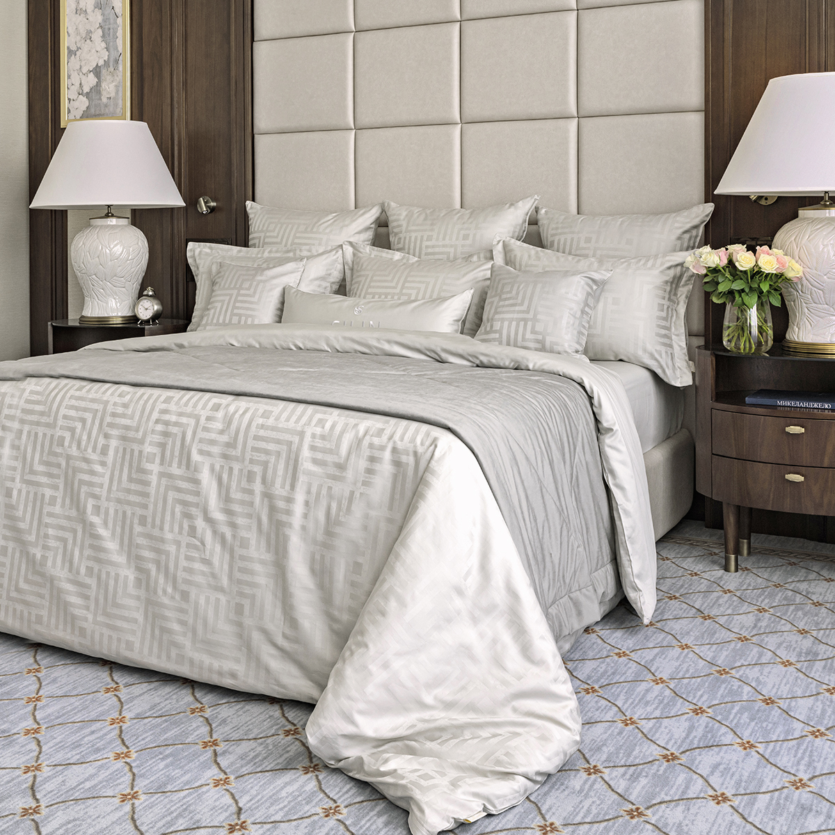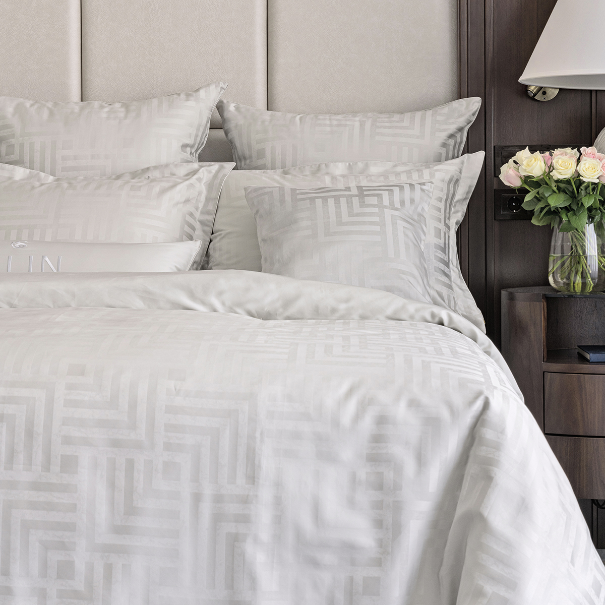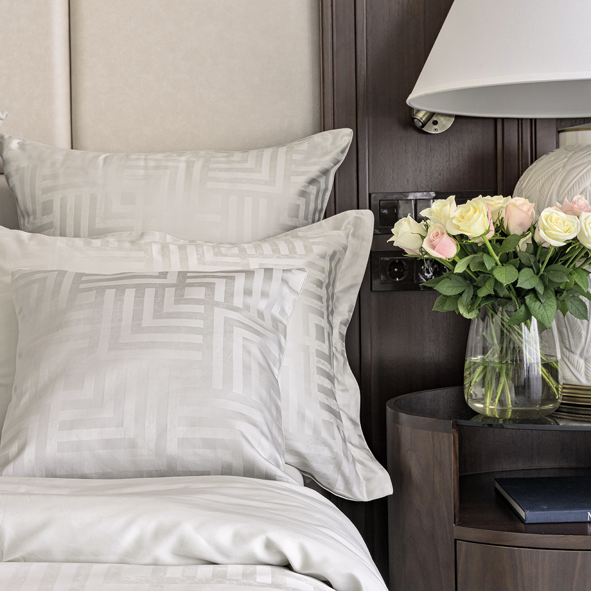 • Лицевая сторона наволочек и пододеяльника выполнена из роскошного жаккарда, оборотная из однотонного хлопка сорта Pima