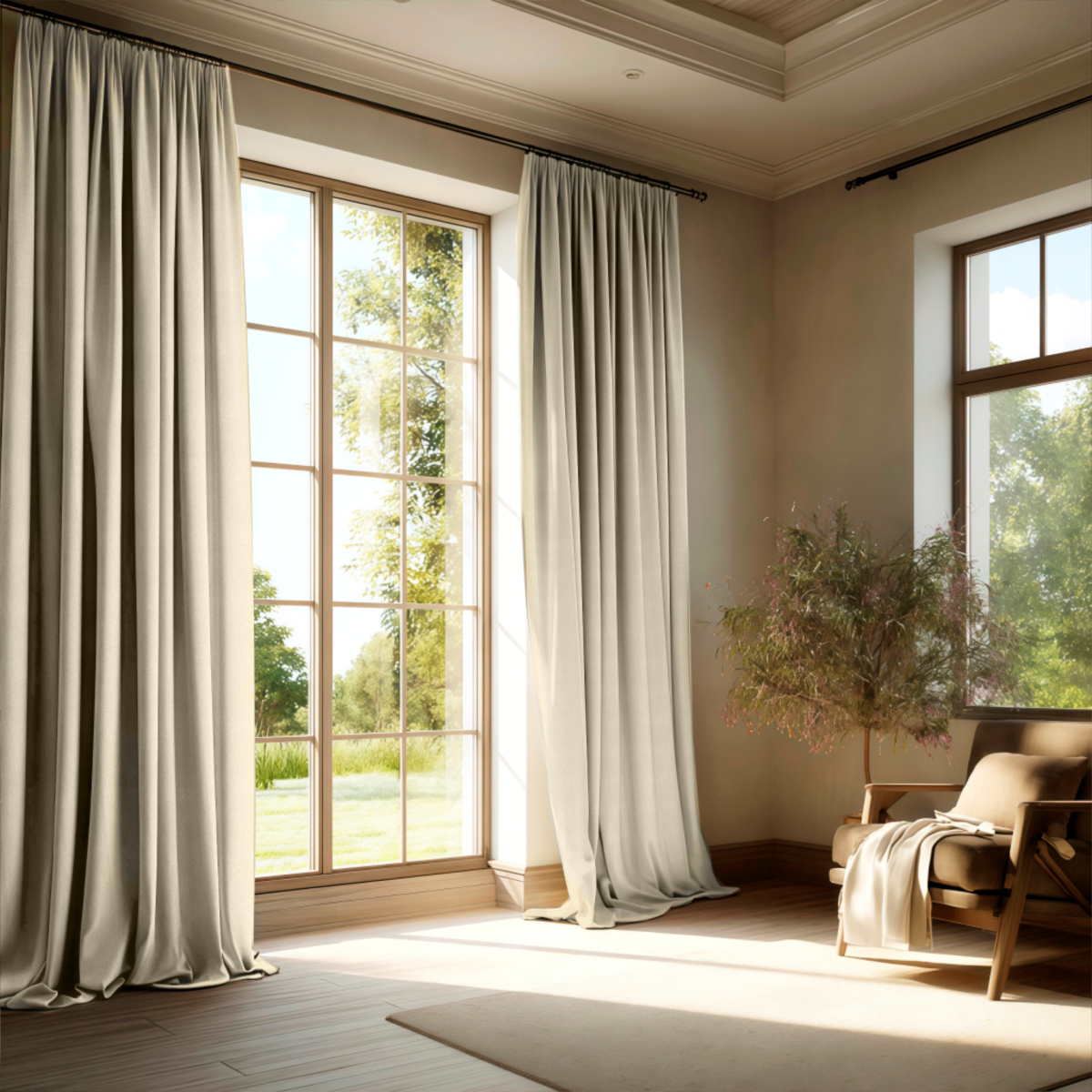 Готовые шторы отшиты на ленте – её можно стягивать и подстраивать под размер окна. Шторная лента, в свою очередь, является прекрасным помощником в создании объемной драпировки.
