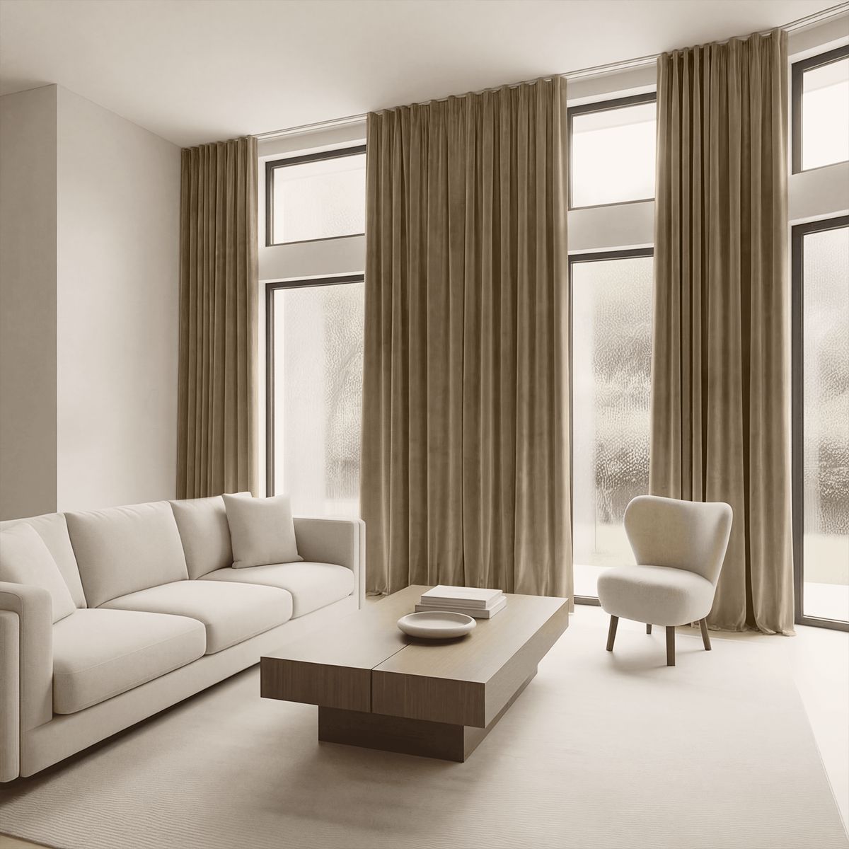 Шторы из мягкого высококачественного бархата, который выглядит дорого и стильно. Высокая плотность ткани (270 гр/м²) обеспечивает отличную светозащиту, а благородная фактура добавляет интерьеру статусности.