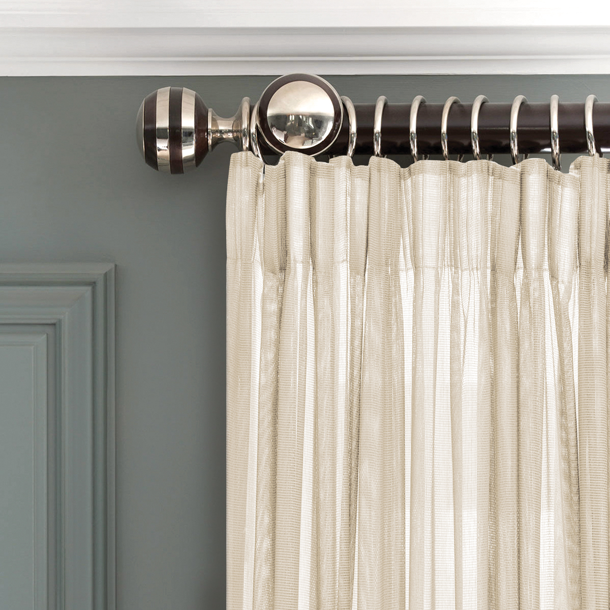 - Тюль крепится на карниз при помощи шторной ленты